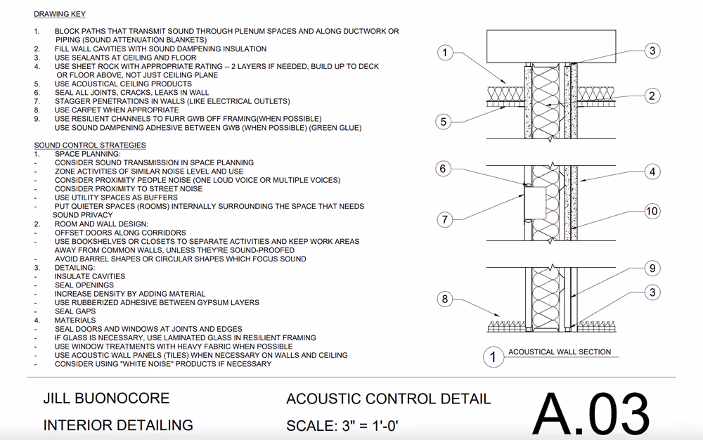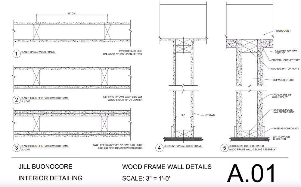 In INTR 350: Interior Detailing, I learned how detailing connects design ideas to built reality through materials, construction systems, ergonomics, and codes. The course emphasized that details are not only technical but also an important part of expressing the overall design intent. These detailing sheets I created show my ability to produce clear and accurate drawings that reflect structural systems, material properties, and installation methods. They also demonstrate an understanding of life safety requirements and accessibility standards, which are critical in professional practice.